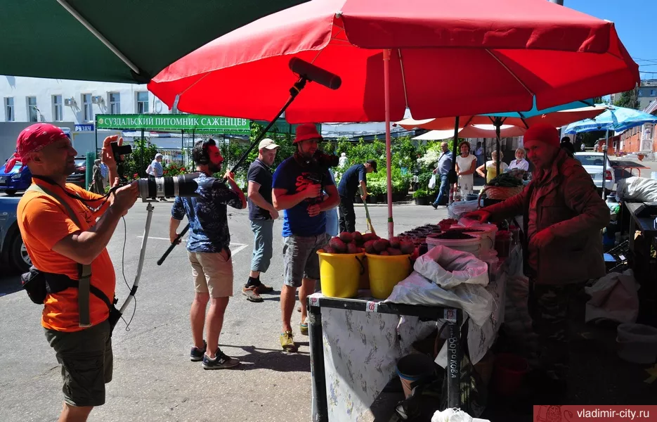 Съемки начались с посещения Владимирского муниципального центрального рынка на улице Батурина. Здесь телевизионщики пообщались с работниками и арендаторами рынка, которые реализуют собранные в садах и лесу ягоды.