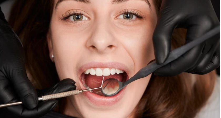 3. Через полчаса, когда анестезия уже подействовала, врач проверяет чувствительность слизистой: неострым предметом надавливает на дёсны. Никаких болевых ощущений быть не должно. Если они всё-таки есть, доза анестезии увеличивается.