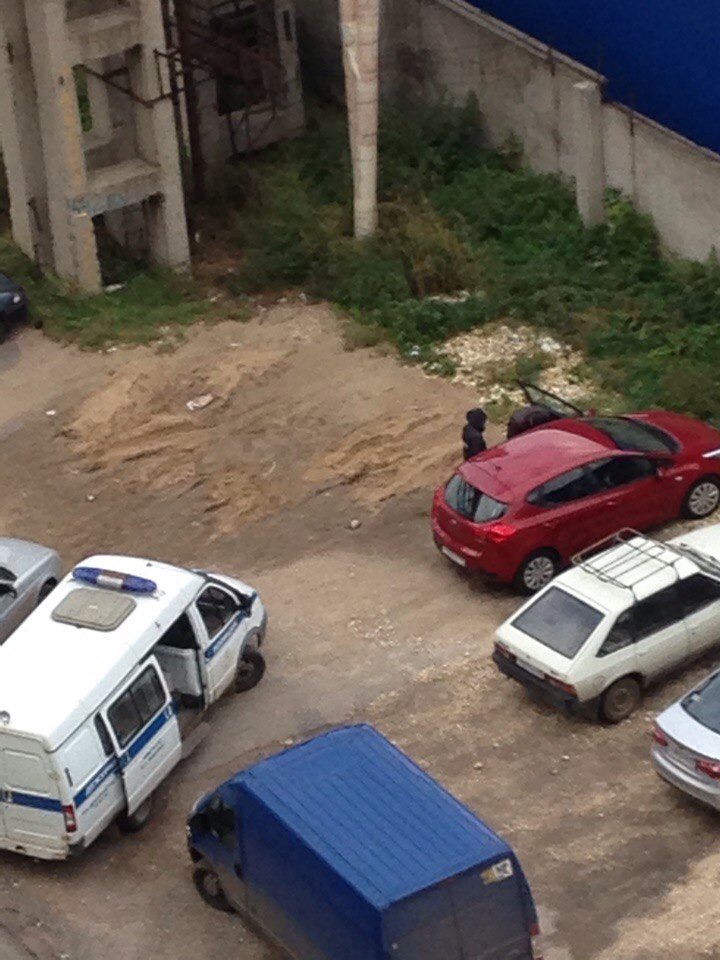 Спустя еще час житель дома, находящегося рядом с украденной машиной, выложил фотографию, на которой рядом с ней стоит полицейская “Газель” и из украденной машины вылезают двое мужчин.