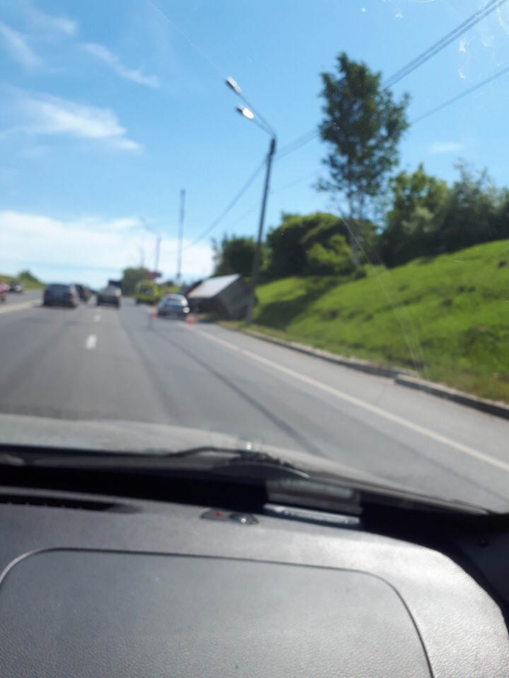 Случившееся стало причиной огромной пробки, поскольку чтобы достать фуру сотрудникам ГИБДД пришлось перекрывать движение в обе стороны.