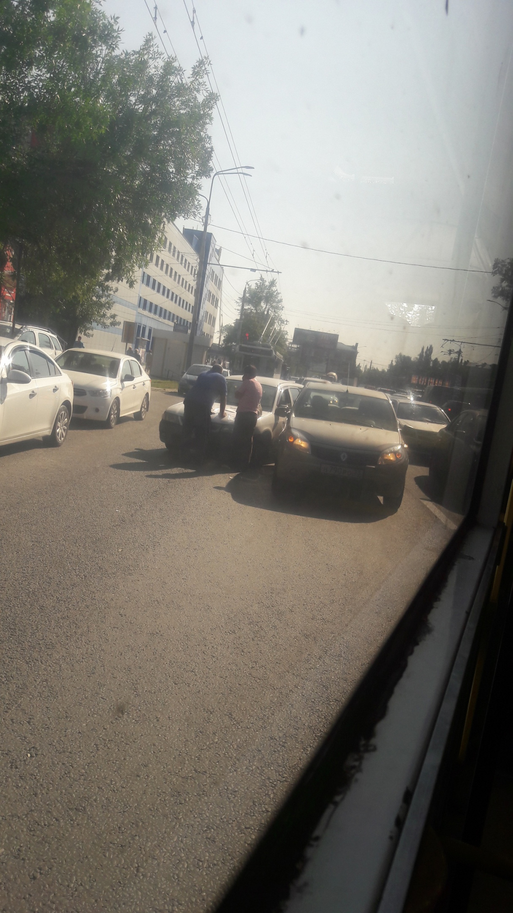 По фотографиям видно, что столкнулись два легковых автомобиля, таким образом усугубив и без того растянувшуюся пробку.