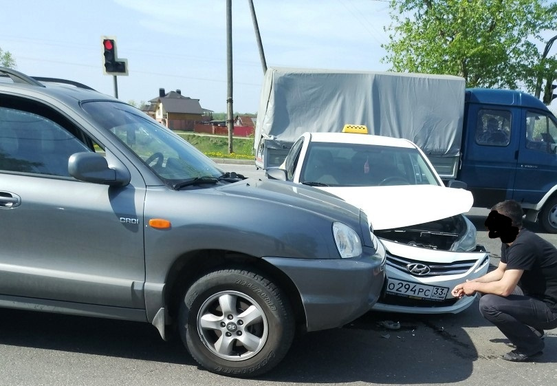 По информации очевидцев из группы "Подслушано Автомобилистов Владимир", водитель такси решил совершить разворот на повороте на улицу Центральная, и задел кроссовер "Hyundai".