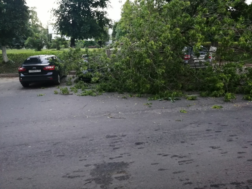 На улице Никитской сегодня утром дерево упало на припаркованные автомобили.