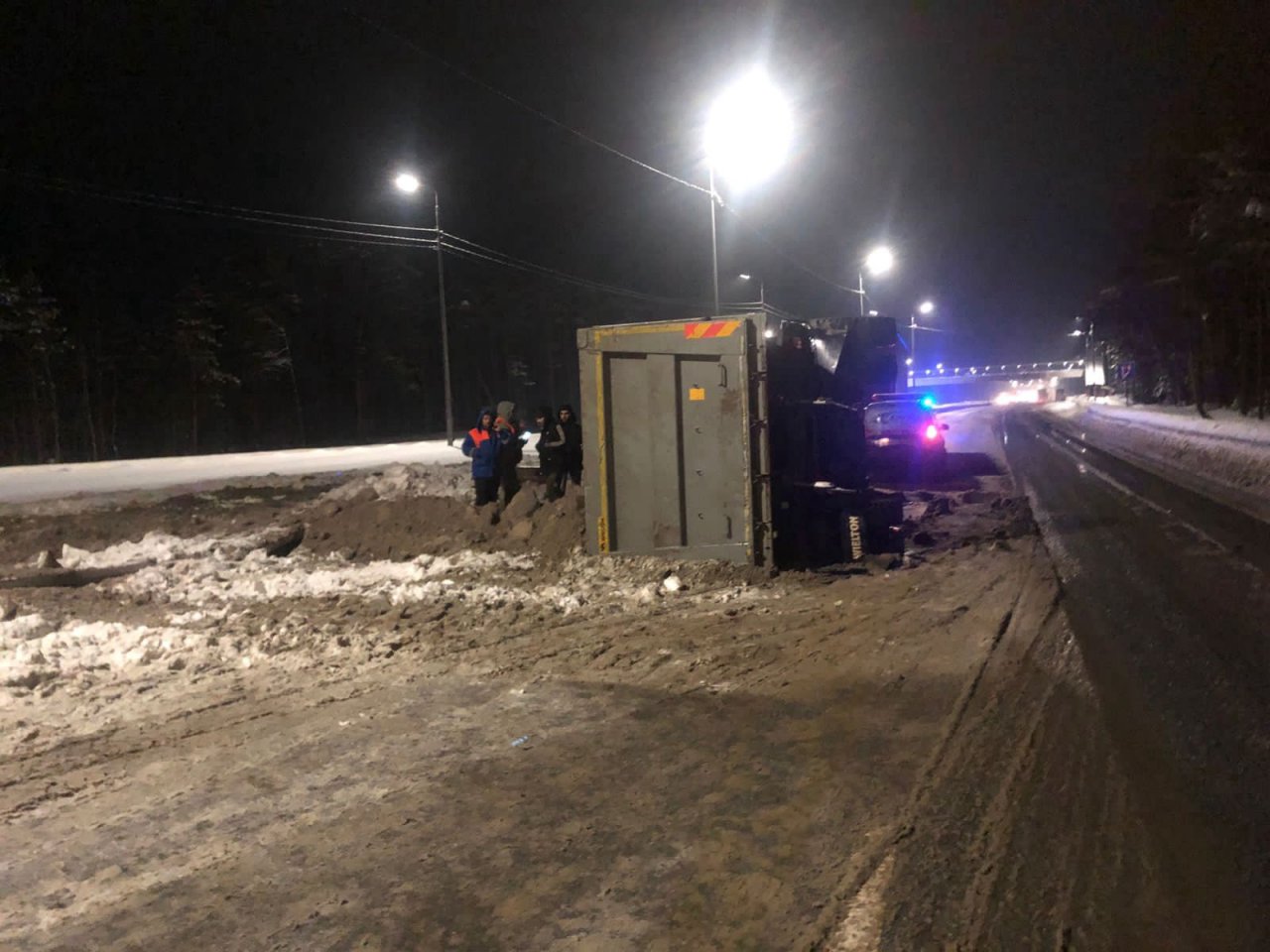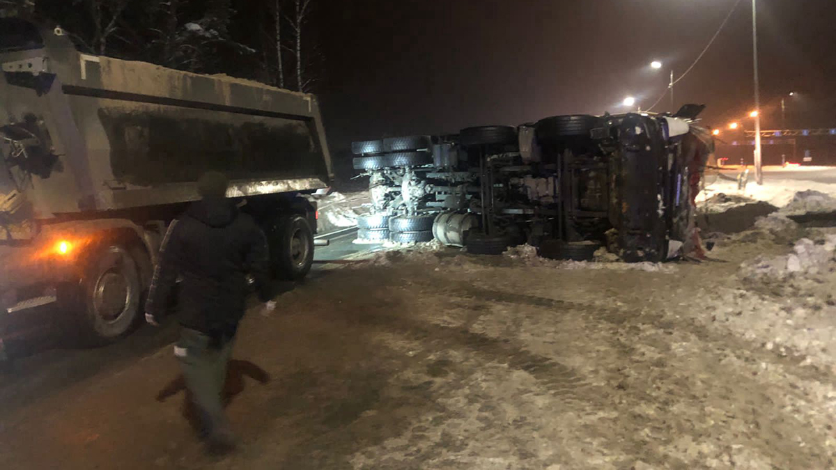Ночью, 8 февраля под Покровом произошло серьёзное ДТП с пострадавшим: на на 108 км трассы М-7 опрокинулся самосвал с песком.