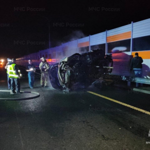 Тушить пожар отправились 11 огнеборцев. По прибытию спасателей было установлено, что автомобиль горел по всей площади. Пожарные оперативно потушили пламя на площади 10 кв.м. Сообщается, что людей в транспортном средстве не было.