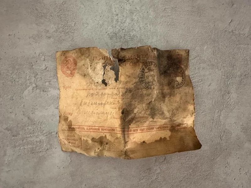 Документы серьёзно повреждены, однако текст одного послания сохранился: 8 августа 1942 года родственники из Чувашии пишут Ольге Васильевне, проживающей на улице Марата, рассказывают о жизни в тылу и помощи эвакуированным ленинградцам. Вторая открытка датирована 14 июля 1942 года, но адресат пока не установлен — прочтение станет возможным после реставрации.