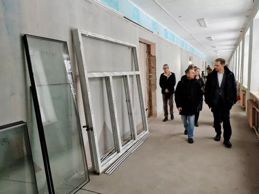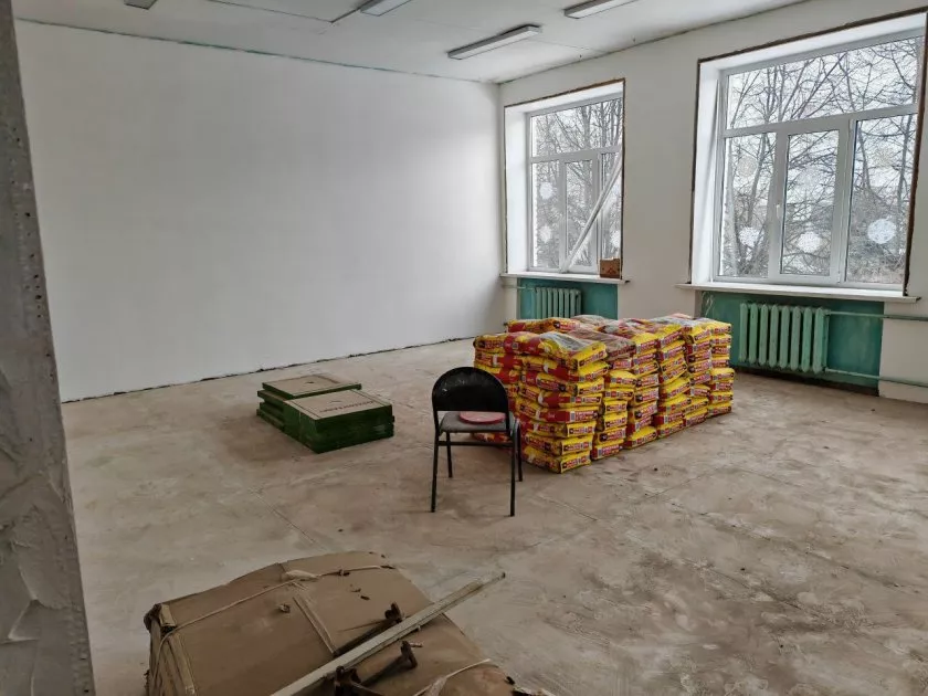 В некоторых классах уже демонтированы старые двери и отделка, стены практически готовы к покраске. Основные черновые работы в кабинетах завершены, теперь строители переходят к коридорам — там предстоит шпаклёвка и выравнивание поверхностей. После этого начнётся покраска.