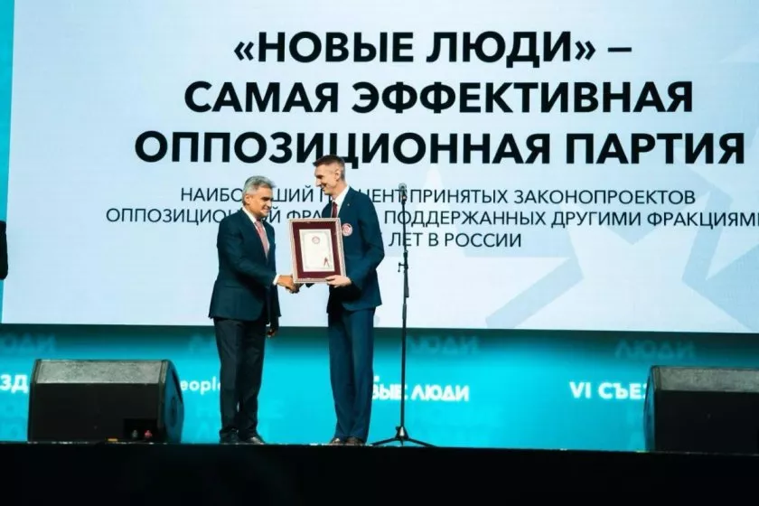 На VI съезде «Новых людей» в Петербурге произошло событие, неожиданное для многих. Представители Книги рекордов России заявили, что, по их подсчётам, «Новые люди» — самая результативная оппозиционная фракция восьмого созыва Госдумы. У неё 525 внесённых законопроектов, 230 принятых — конверсия 43,8%. У КПРФ — 41,3%. У «Справедливой России» — 35,2%. У ЛДПР — 31,6%.