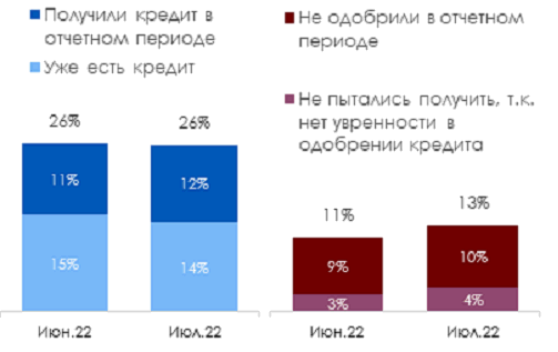 Компонента кредиты отошла от пиковых значений из-за небольшого увеличения числа МСБ, не получивших одобрение заявки на кредит - таких было 10% опрошенных.