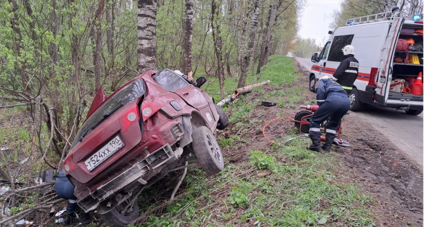 По предварительным данным, автомобиль совершил наезд на дерево, в результате чего водитель оказался заблокирован в поврежденном транспортном средстве.