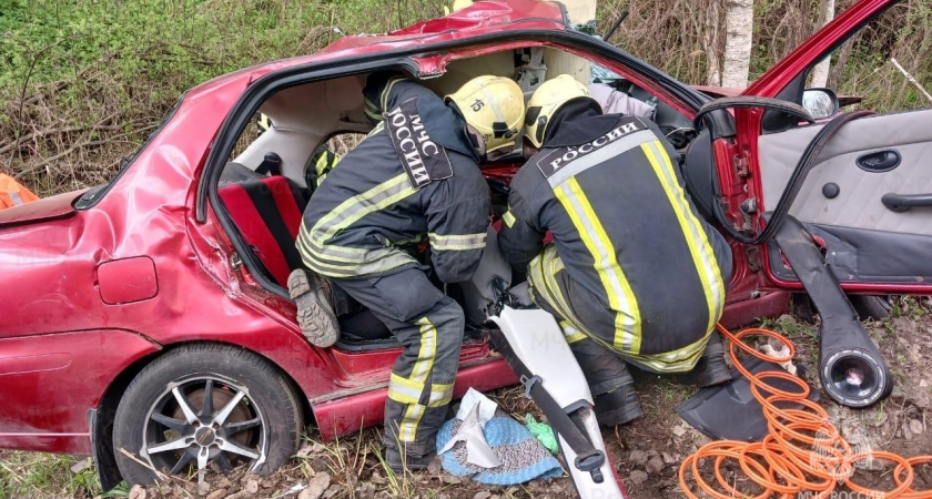 В результате аварии автомобиль съехал в кювет. Спасателям пришлось проводить деблокировку пострадавшего. О его состоянии не сообщается, причины ДТП не указываются.