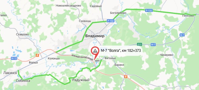 Один из возможных маршрутов - через Владимир, Боголюбова, Хохлово, Пенкино, второй – через Лакинск, Собинку, Коняево, Улыбышево.