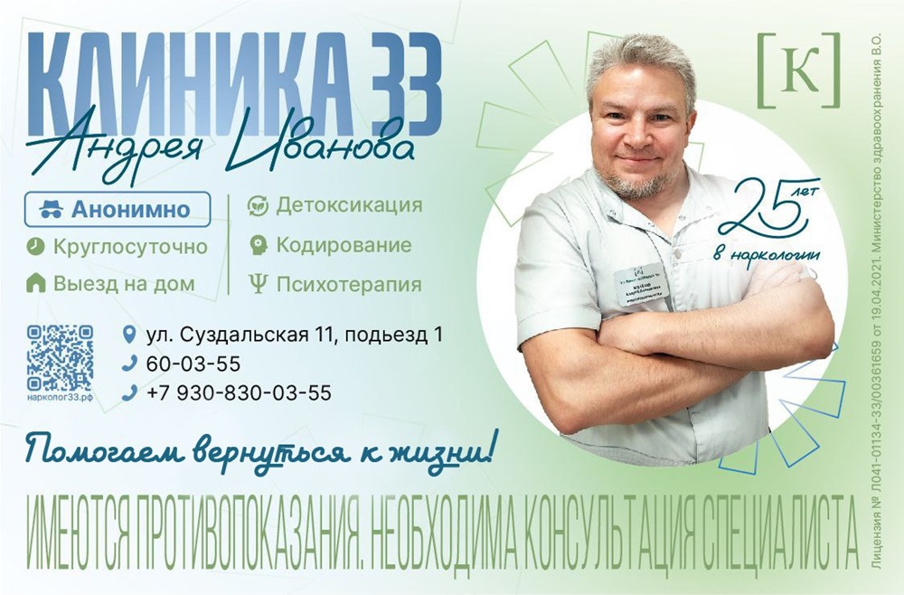 Реклама. Рекламодатель ООО "КЛИНИКА" ИНН: 3328025298 ОГРН: 1203300006865.