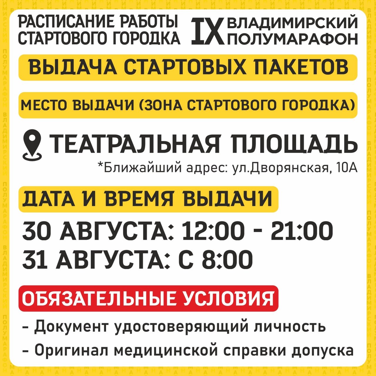 Стартовый городок расположится на Театральной площади. Выдачу стартовых пакетов можно будет получить там же 30 августа с 12:00 до 21:00 и в день забега с 8:00. Для этого понадобятся паспорт и оригинал медицинского допуска.
