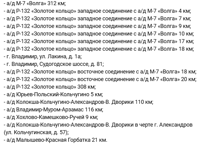 Полный список участков дорог, где будут установлены передвижные камеры: