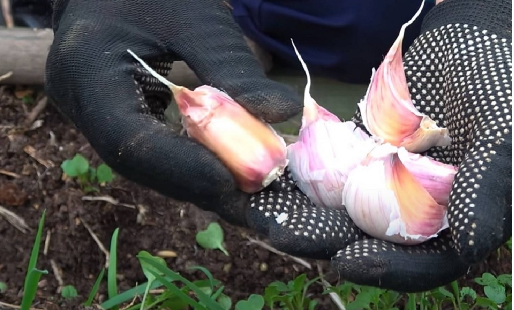 Правильно посаженный под зиму чеснок успевает создать мощную корневую систему и весной трогается в рост, как только сойдет снег: