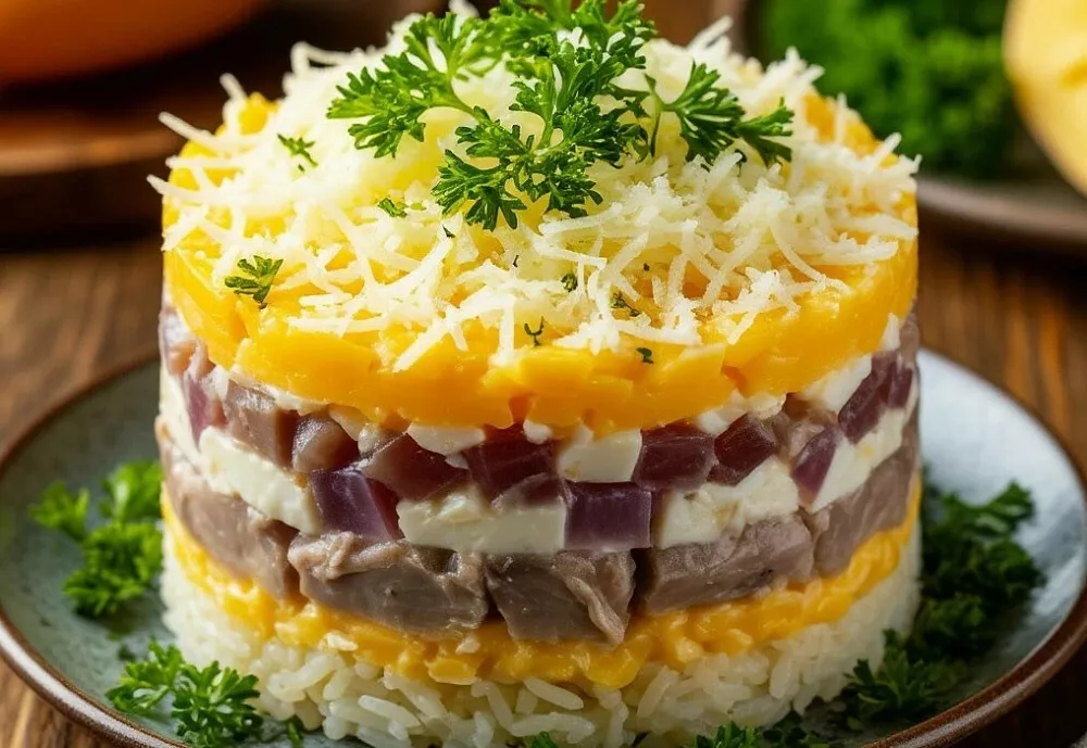 Каждый год я ломаю голову: что приготовить на Новый год, чтобы и вкусно было, и в тему, и чтобы гости не сказали «опять оливье». В этом году решила сделать ставку на символ — ведь 2026-й, по восточному календарю, пройдёт под знаком Красной Огненной Лошади. А раз уж лошадь — почему бы не вспомнить сказку? Так родился мой салат «Конёк-Горбунок»: