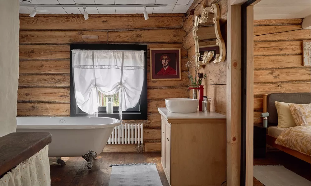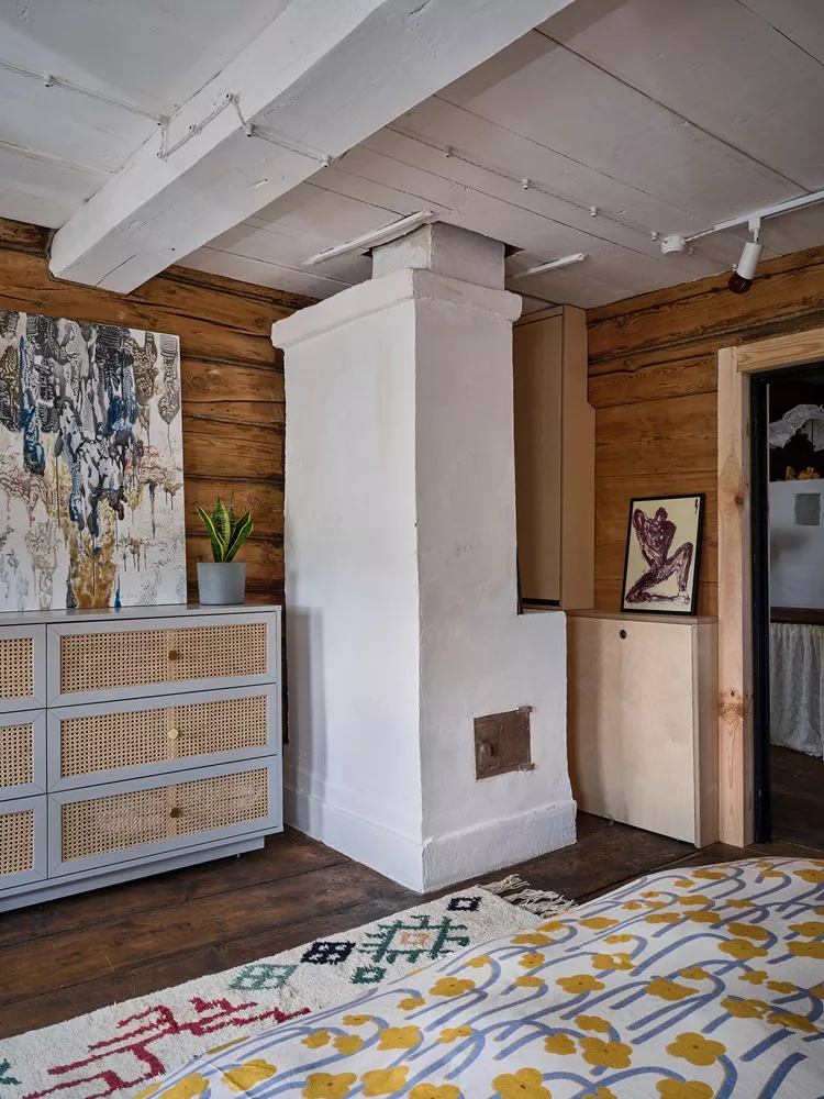 Успех проекта объясняется его поразительной гармоничностью. Архитектор Петр Сафиуллин не стал делать из избы музейный экспонат или, наоборот, полностью перекраивать её под современность. Он сохранил саму душу дома: старинные печи, бревенчатый сруб, особую планировку. А затем бережно «вплёл» в это пространство привычную нам современность — надстроил этаж с открытой террасой, добавил панорамные окна и наполнил интерьер дизайнерскими предметами и современным искусством.