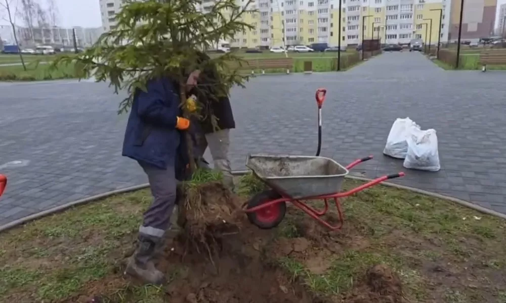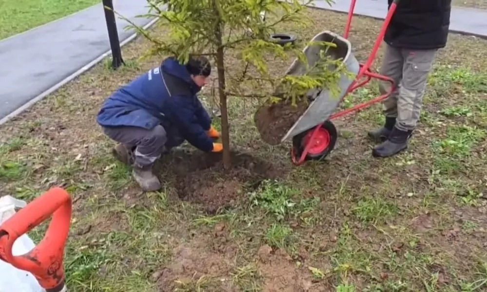 Молодое дерево извлекли с прежнего места посадки вместе с крупным комом земли, чтобы обезопасить корни и сохранить часть грунта, и аккуратно перенесли в другую часть сквера. Работники тщательно подготовили посадочную площадку: выкопали подходящую лунку, засыпали питательный состав и поместили ёлку. Оставшееся пространство отсыпали заранее подготовленной специальной земляной смесью для роста хвойных пород.
