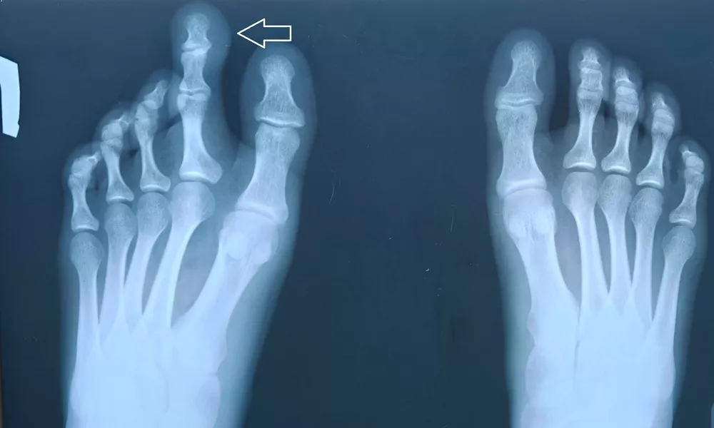 Как рассказали в пресс-службе центра, за помощью с такой проблемой обратилась 17-летняя девушка с сильным увеличением второго пальца на левой ноге. Помимо очевидного косметического дефекта она также не могла найти подходящую ей обувь. Травматолог-ортопед принял решение о необходимости хирургического вмешательства в этой ситуации.