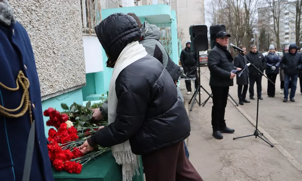 Участники церемонии почтили память Даниила Юрьева минутой молчания и возложили к мемориальной доске цветы.