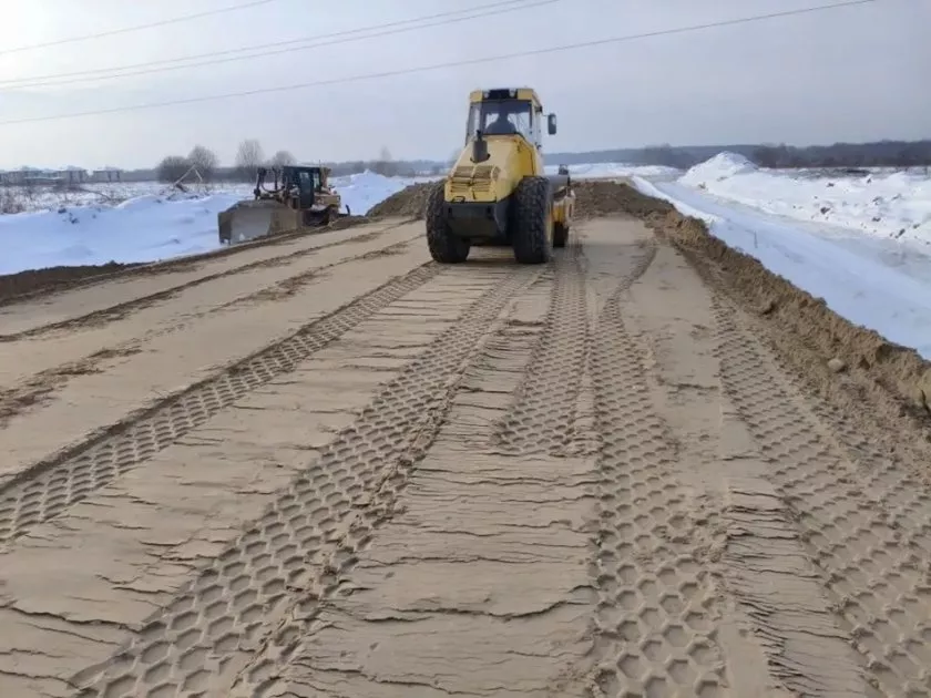 В настоящее время строители занимаются созданием песчаного основания будущей трассы. Его высота в некоторых местах достигнет 1,2 метра. Параллельно идет монтаж водопропускных труб, необходимых для отвода воды. На выделенной территории проводятся работы по снятию грунта, валке деревьев и мульчированию.