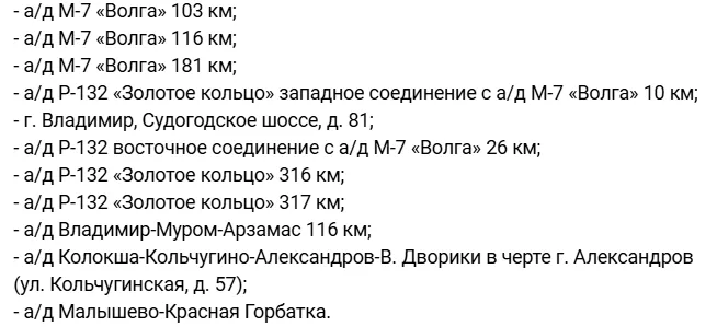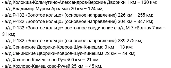 В зоне повышенного контроля окажутся ключевые федеральные и региональные автодороги, включая трассу М-7 «Волга», маршрут Р-132 «Золотое кольцо», а также участки вблизи Владимира, Александрова, Камешково и других населённых пунктов. Конкретные точки установки комплексов выбираются для профилактики ДТП и снижения аварийности. Полный список участков дорог:
