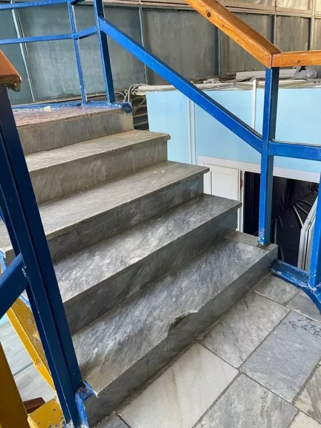 - В главном спортивном зале, где проходят основные тренировки и соревнования, обнаружили серьезные дефекты пола. Из-за трещин и неровностей покрытие невозможно качественно мыть и дезинфицировать во время уборки. Такая же проблема обнаружилась и на лестнице в холле. В тренажерном зале на первом этаже ситуация оказалась не лучше. На стенах видны следы протечек, а слой краски и отделочных материалов начал разрушаться и осыпаться.