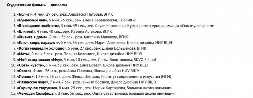 Организаторы уже объявили участников конкурсной программы. В этом году зрителей ждёт настоящий праздник анимации — в конкурс вошла 81 картина, созданная как молодыми авторами, так и признанными мастерами. В отборочную комиссию вошли известные художники и режиссёры: Марина Курчевская, Светлана Филиппова, Мария Муат, Екатерина Соколова, Евгений Фадеев и Алексей Алексеев. Именно они определили, какие работы будут показаны гостям, участникам и жюри фестиваля.