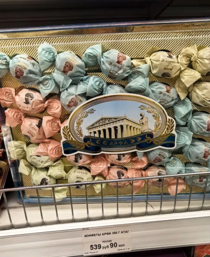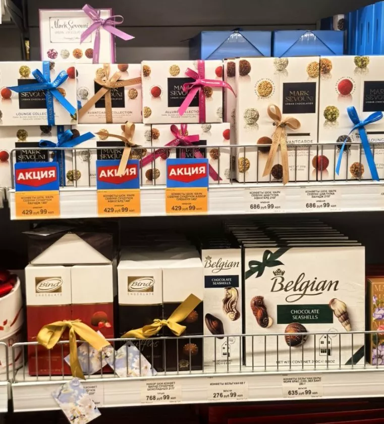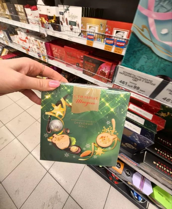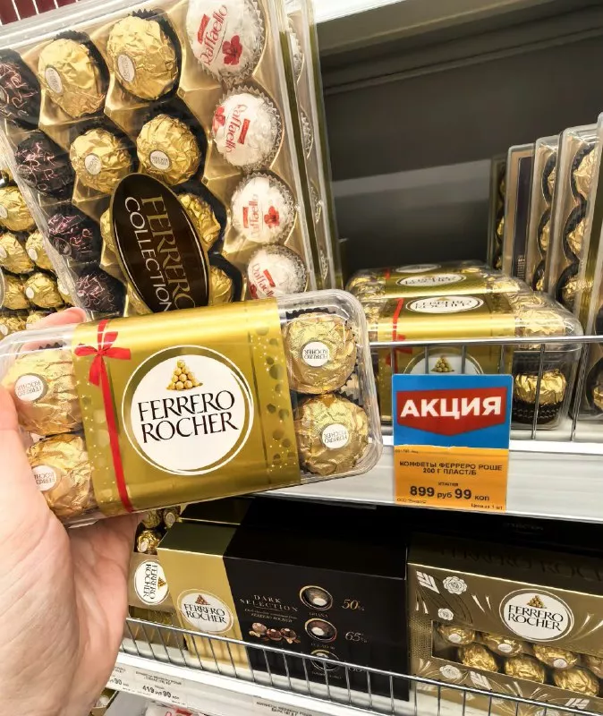 Первым я обратила внимание на всенародно любимые конфеты «Ферреро». Изящные золотые шарики, которые дарят ощущение праздника и роскоши.