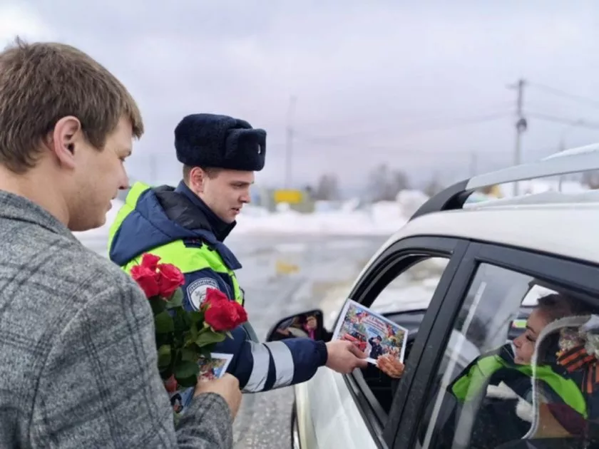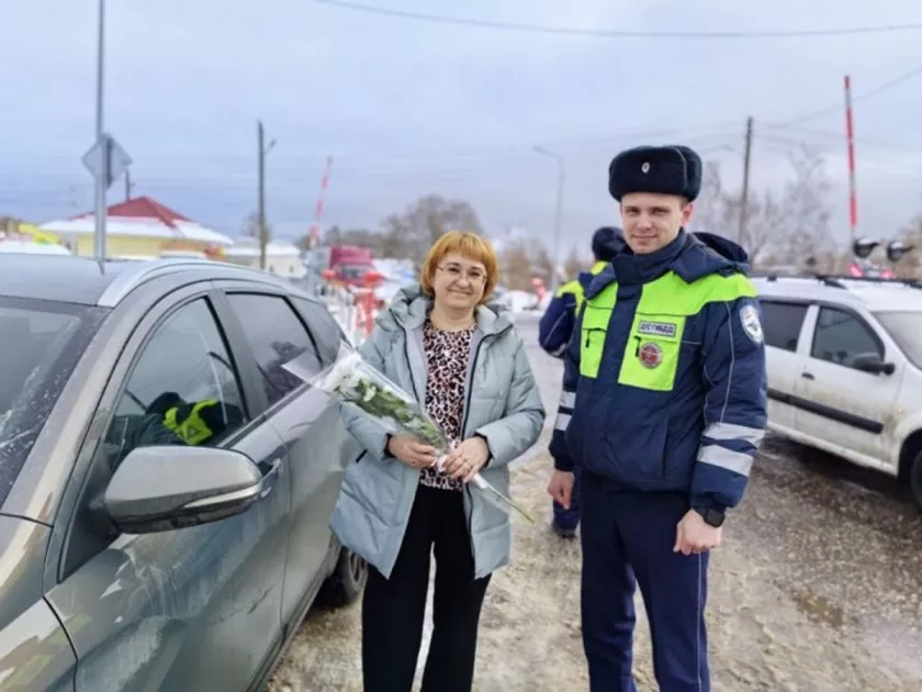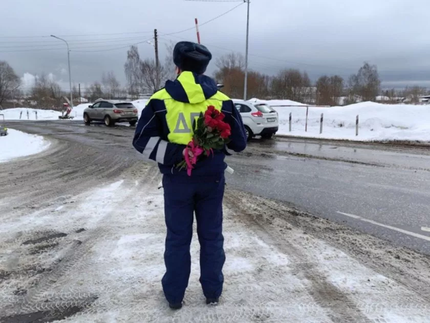 В Гусь-Хрустальном прошла праздничная акция ДПС «Цветы для автоледи»