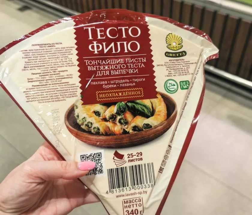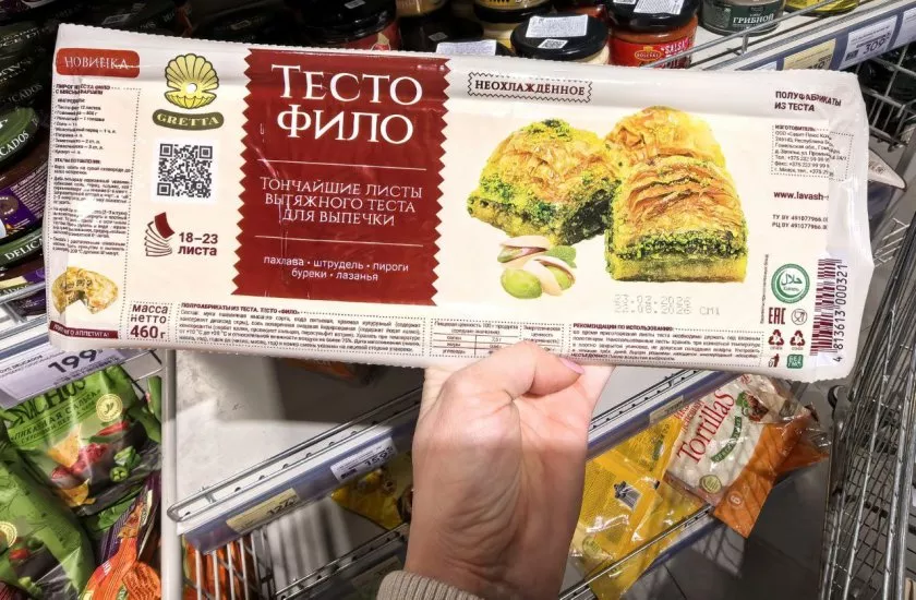 А для тех, кто любит творить на кухне, "Перекресток" предлагает тесто фило (тончайшие листы для выпечки), представленное в двух видах. Это универсальный холст для создания как сладких, так и сытных кулинарных шедевров. Треугольные листья обойдутся в 363 рубля за пачку 340 граммов; прямоугольники - 369 рублей за 460 граммов.