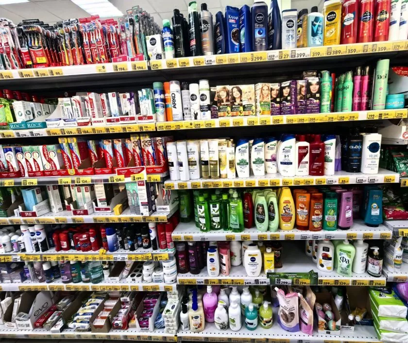 Пройдя дальше, я оказалась в царстве чистоты и свежести. Полки с шампунями и гелями для душа поражали разнообразием брендов и ароматов.