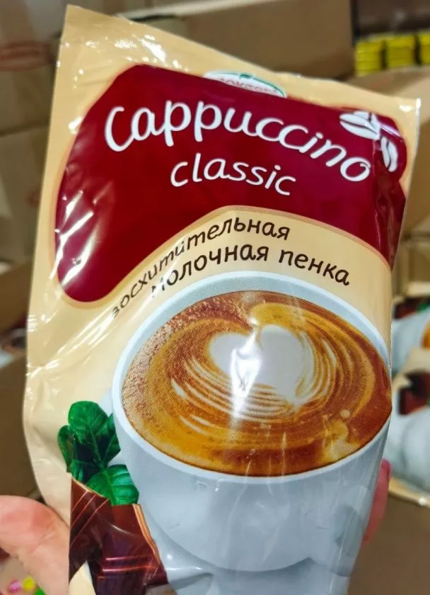Дальше пошло взрослое отделение. Увидела Cappuccino classic с пенкой — пачка 500 граммов за 140 рублей. Дома уже вскрыла, проверила: пенка действительно есть, на вкус не хуже дорогих растворимых.
