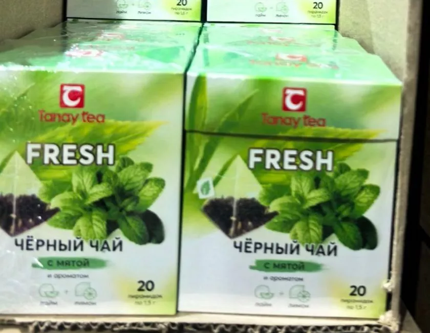 Чайный стенд меня вообще порадовал. Во-первых, нашла Чёрный чай с мятой в пирамидках — 20 штук. Выглядит красиво, можно гостям подавать. Во-вторых, огромная пачка "Танай-эко" (100 пакетиков) для тех, кто пьёт чай литрами. Цену, честно, не запомнила, но там было смешно дёшево — копейки за пакетик.