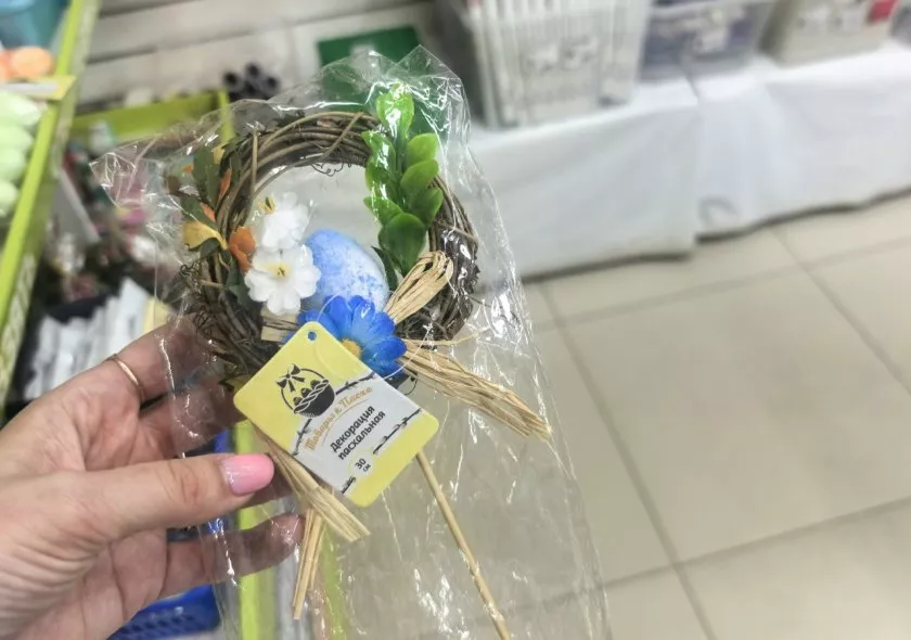 Дальше обратила внимание стеллаж с декором. Подарочные коробки в форме яйца — штука красивая, но я долго думала, зачем они. Продавец сказала, что люди кладут внутрь конфеты или крашеные яйца и дарят. Цены — от 70 до 120 рублей.
