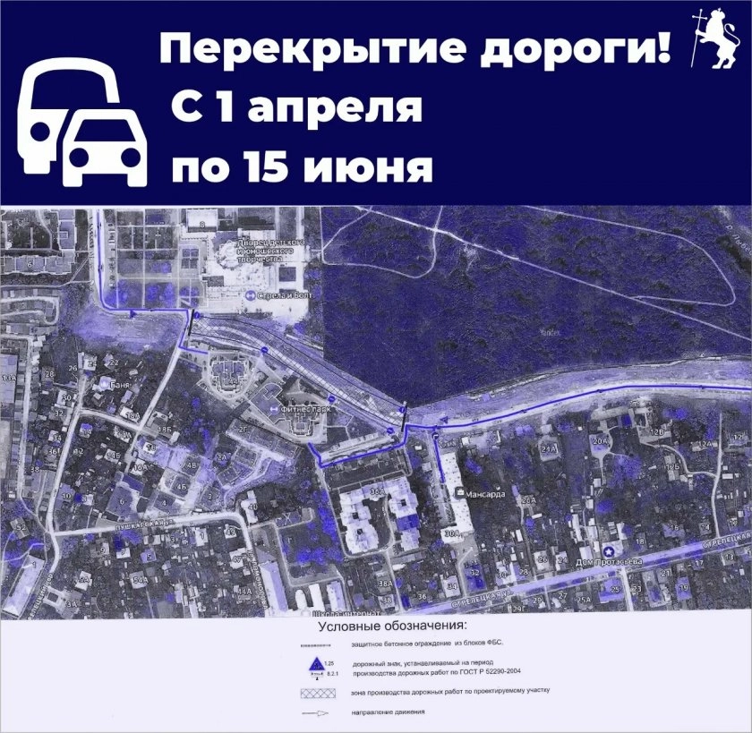 Проезд будет закрыт на участке от дома №44 по Пушкарской до дома №30а по Стрелецкой.