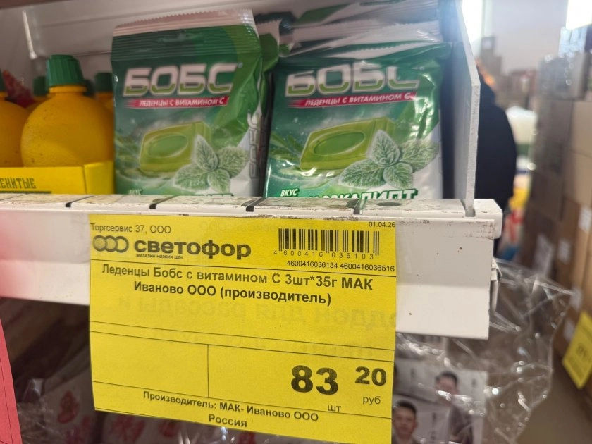 Леденцы «Бобс» с витамином С, вкус эвкалипта — 35 г, 83,20 руб. Такой вкус не любят не все, но я отношусь нормально. Горло в последнее время побаливает, подумал, пригодятся. Внешне — обычные леденцы в яркой упаковке. Эвкалипт должен смягчать, а витамин С весной лишним не будет.