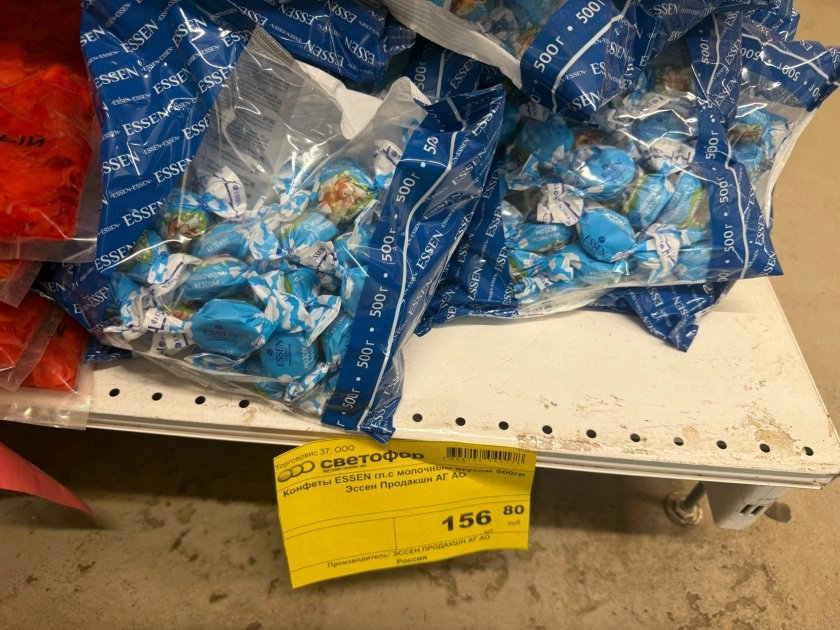 Конфеты «Essen» с молочным вкусом — 500 г. Взял к чаю. Полкило за полторы сотни — дёшево. Надеюсь, вкус не подведёт.