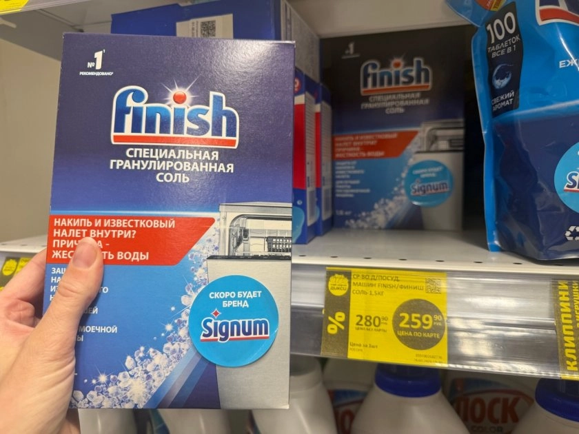 Гранулированная соль "Финиш" в картонной пачке 1,5 килограмма, предназначена для защиты от накипи и известкового налёта. Цена без карты — 289,90 рубля, а с картой — 259,90. Соль как соль, главное — чтобы не было посторонних примесей. Внешне упаковка целая, без повреждений. Полезный расходник для владельцев посудомоек.
