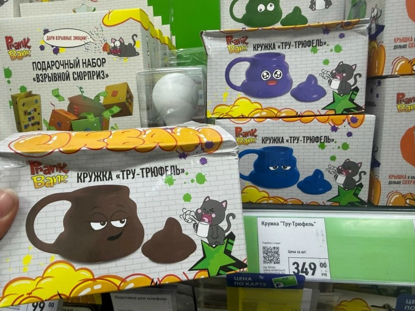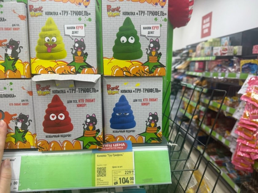 Во время своего последнего похода в "Фикс Прайс" меня привлекли стеллажи не с продуктами и не с хозтоварами, а с забавными и прикольными идеями для подарков и розыгрышей. Вот, что я там увидела — думаю, это вам поднимет настроение.