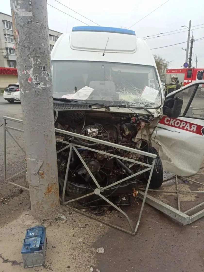 На кадрах видно, что медицинский транспорт получил серьезные повреждения из-за удара многотонного грузовика.