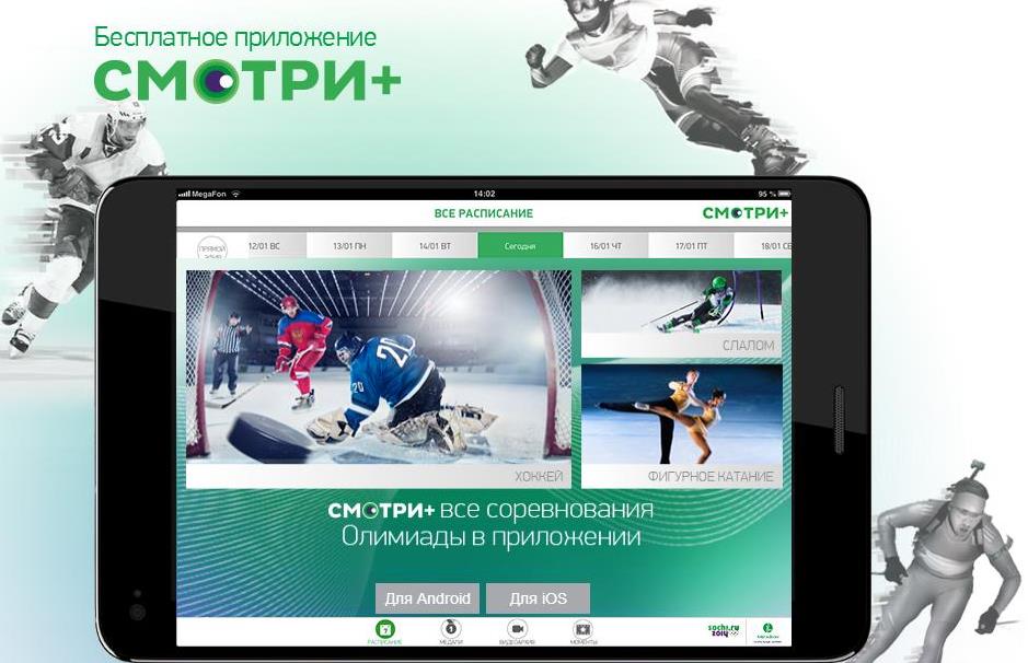 - Благодаря приложению «СМОТРИ+» зрители получат возможность в любой момент посмотреть все, что происходит на Олимпийских играх: все соревнования и церемонии награждения. Эксклюзивность предложения заключается в том, что «МегаФон», помимо трансляций по всем 15-ти видам спорта, соберет в одном приложении самые яркие запоминающиеся эпизоды Олимпийских игр. Пользователи приложения смогут пересматривать результативные моменты Игр с помощью технологии логирования видеоконтента. Технология позволяет не только просмотреть отмеченный момент, но перемотать всю трансляцию до него и после. Эта возможность реализована благодаря сотрудничеству с АНО «Спортивное вещание» («Панорама»), которая является официальным вещателем ХХII зимних Олимпийских игр в Сочи.