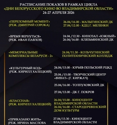 В 2025-м году в рамках Дней Белорусского кино состоялось 45 показов в учреждениях культуры и образования Владимирской области. Современное белорусское кино увидели более 10 тыс. человек, то есть наши земляки проявляют активный интерес.