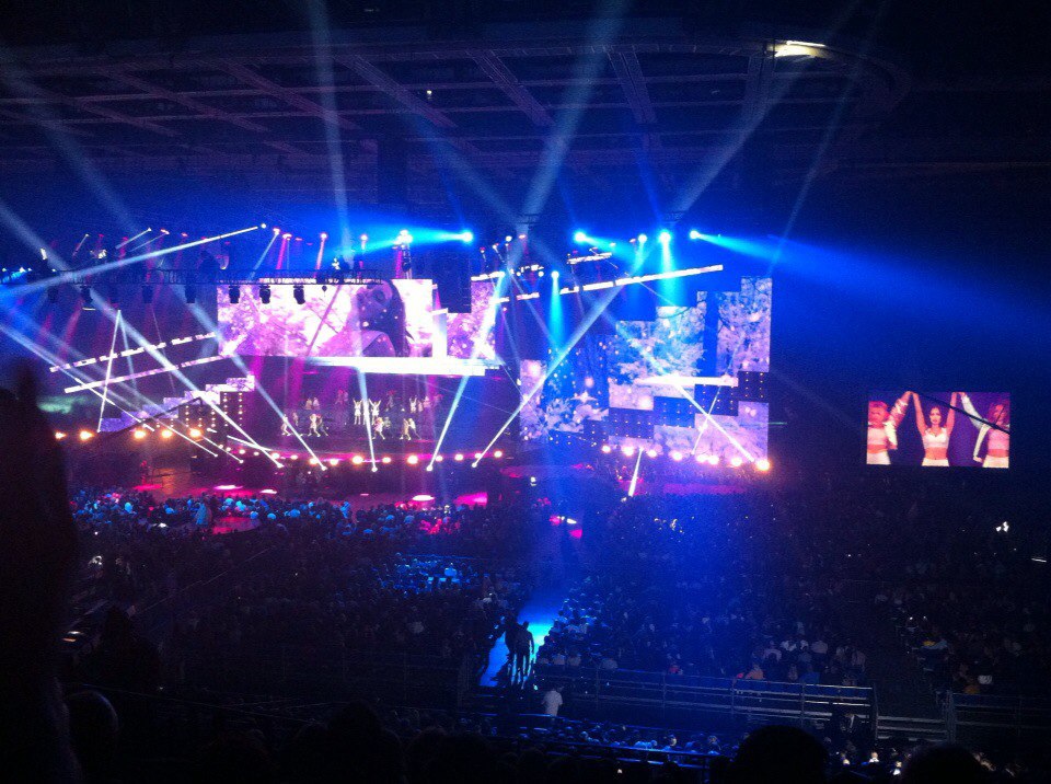 Понравилась сама атмосфера в Олимпийском, техническая сторона шоу, организация мероприятия: не пришлось стоять долго в очереди, в зале стояли девушки и подсказывали, где ряд и место. Шоу началось ровно в 19.00, как и было обещано.