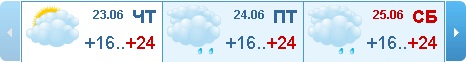 В пятницу 24-го июня ожидается небольшой дождь. В течение всего дня столбик термометра будет держаться на отметке +23 градуса.