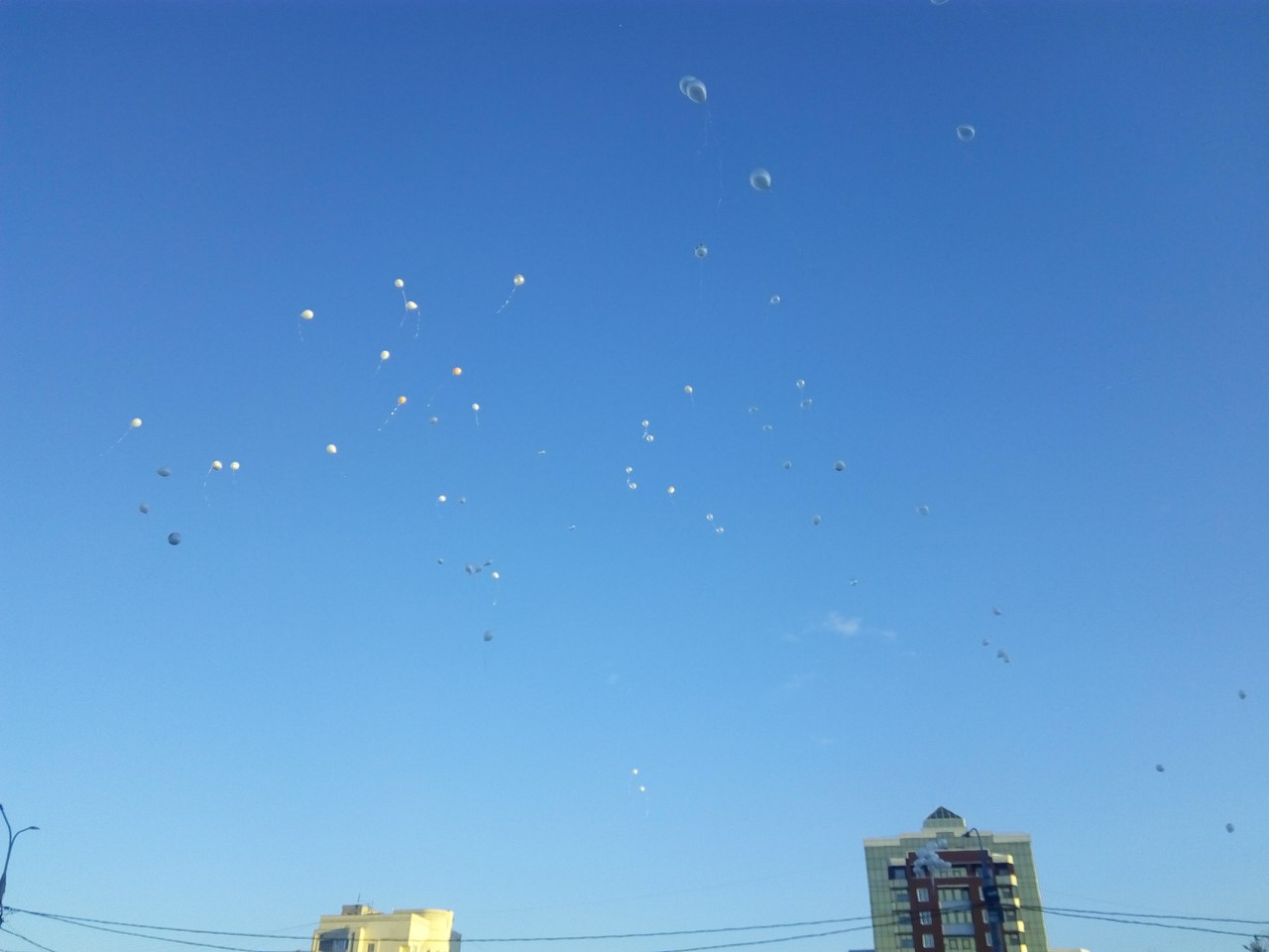 Во Владимире в небо выпустили сотни белых шаров (фото)