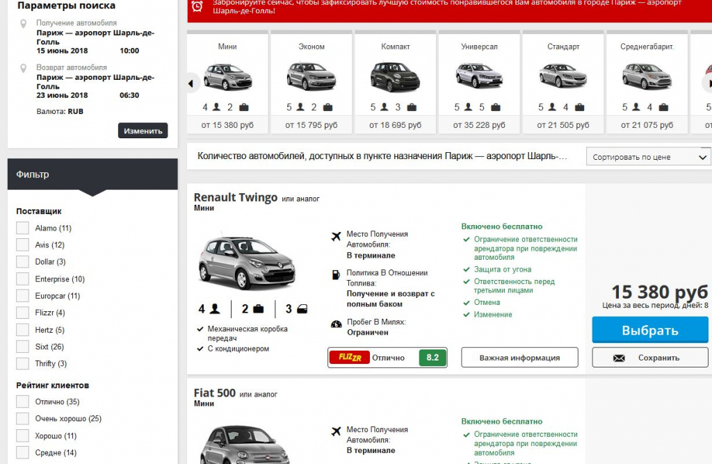 - Сайт проведет поиск по всем прокатным компаниям, работающим во Франции, и предложит Вам доступные варианты;