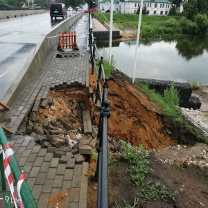 В группе "Чистый Суздаль" появилась видеозапись с нового моста через Каменку. После дождя, который прошел в городе 4 августа, пешеходная зона моста обвалилась.