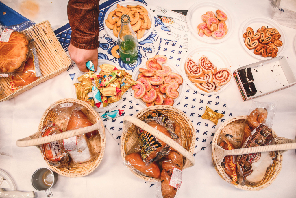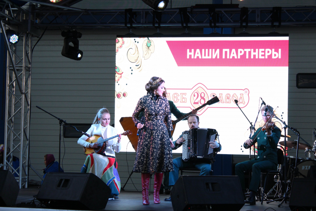 Конечно, гостей ждало угощение. Стол был оформлен в русско-народном стиле с традиционной выпечкой, сладостями и горячим чаем от партнеров компании «Луидор». Неподалеку от наполненных столов была организована выдача арбузов, где каждый желающий мог получить его за выложенную фотографию с праздника в социальные сети с хэштегом #Луидор_Мск.